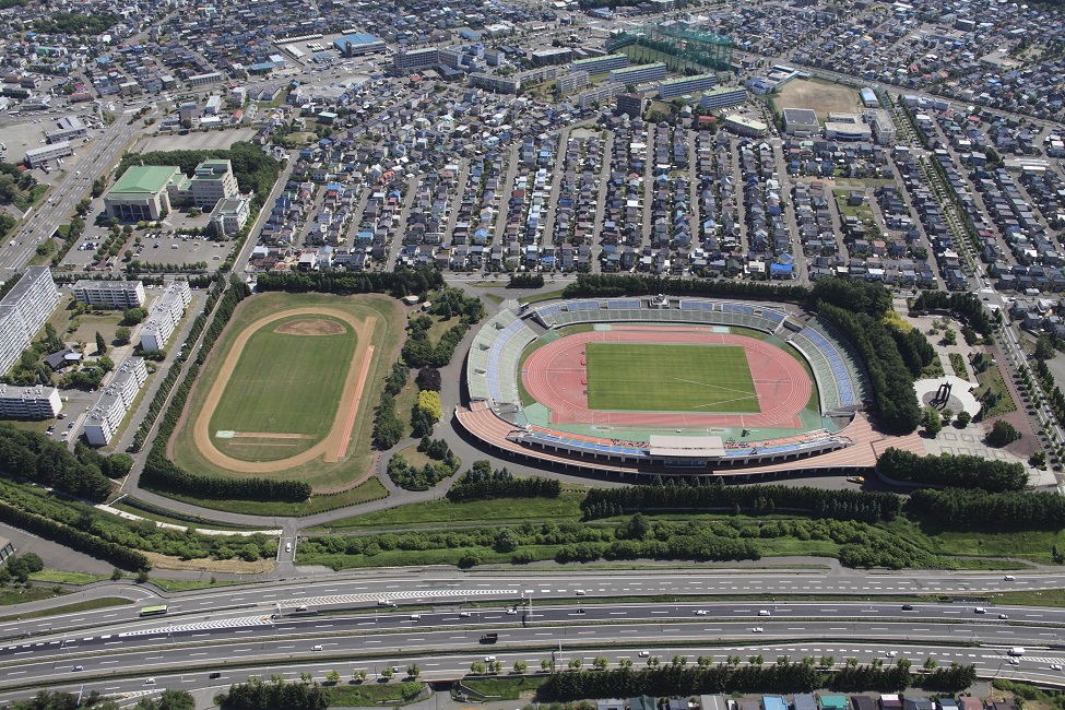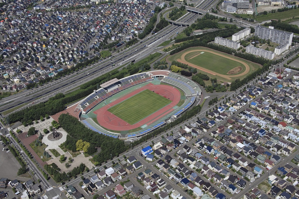 北海道札幌市にある厚別公園補助競技場。2015年の夏、全日本中学校陸上で利用されました。