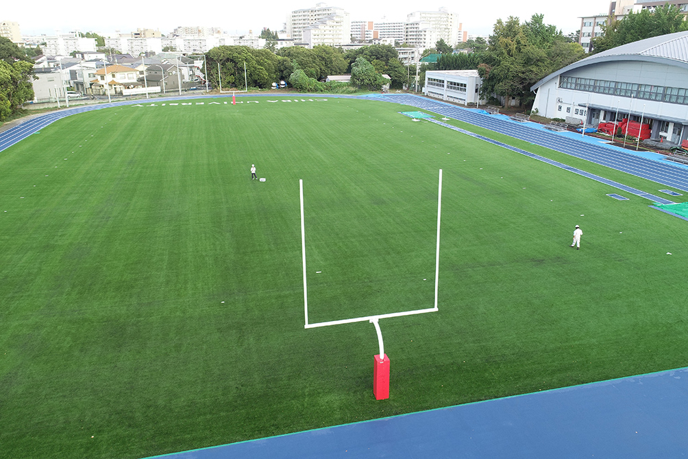 | 施工範囲 | ウレタン舗装『レオタンαエンボスSF』(3,920㎡)、ロングパイル人工芝(8,833㎡)、競技施設、雨水排水・給水設備など |