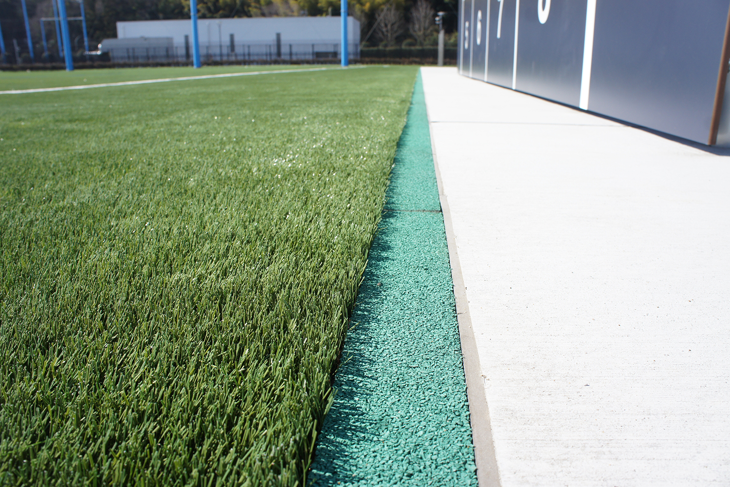 また、グラウンド外周にマイクロプラスチック流出抑制を図る排水施設として、人工芝グラウンド用の排水材を整備。