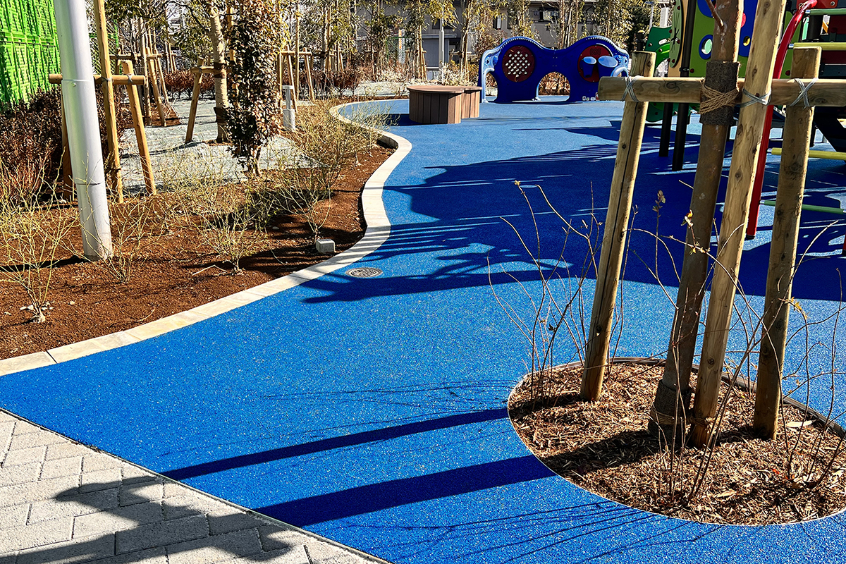 ふれあい広場のゴムチップ舗装