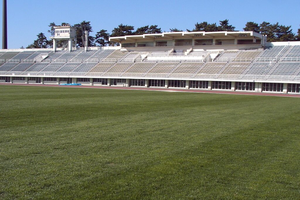 群馬県前橋市にある正田醤油スタジアム群馬。ザスパクサツ群馬のホームで2014年に全面改修。使用したのは砂床で育成したティフトン芝のビッグロール。2005年の改修では味の素スタジアムサブグラウンド(アミノバイタルフィールド)の芝生を再利用したことで注目される。