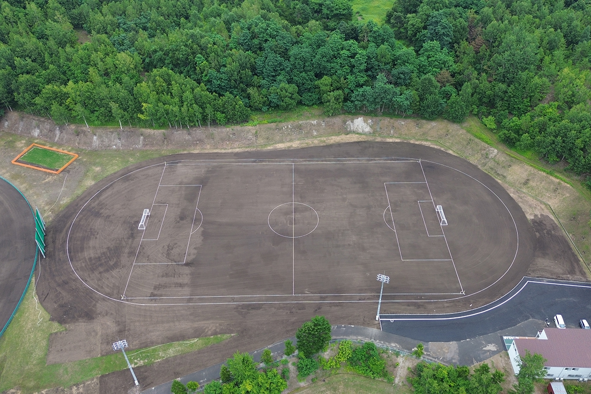整備工事の元請会社は、岩田地崎建設株式会社で、当社は、硬式野球場及び軟式野球場などの整備工事を担当し、舗装工事、防球ネットやホームベースなどの競技施設の整備も実施。