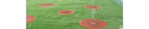 施工範囲 ロングパイル人工芝舗装、防護マット、競技施設