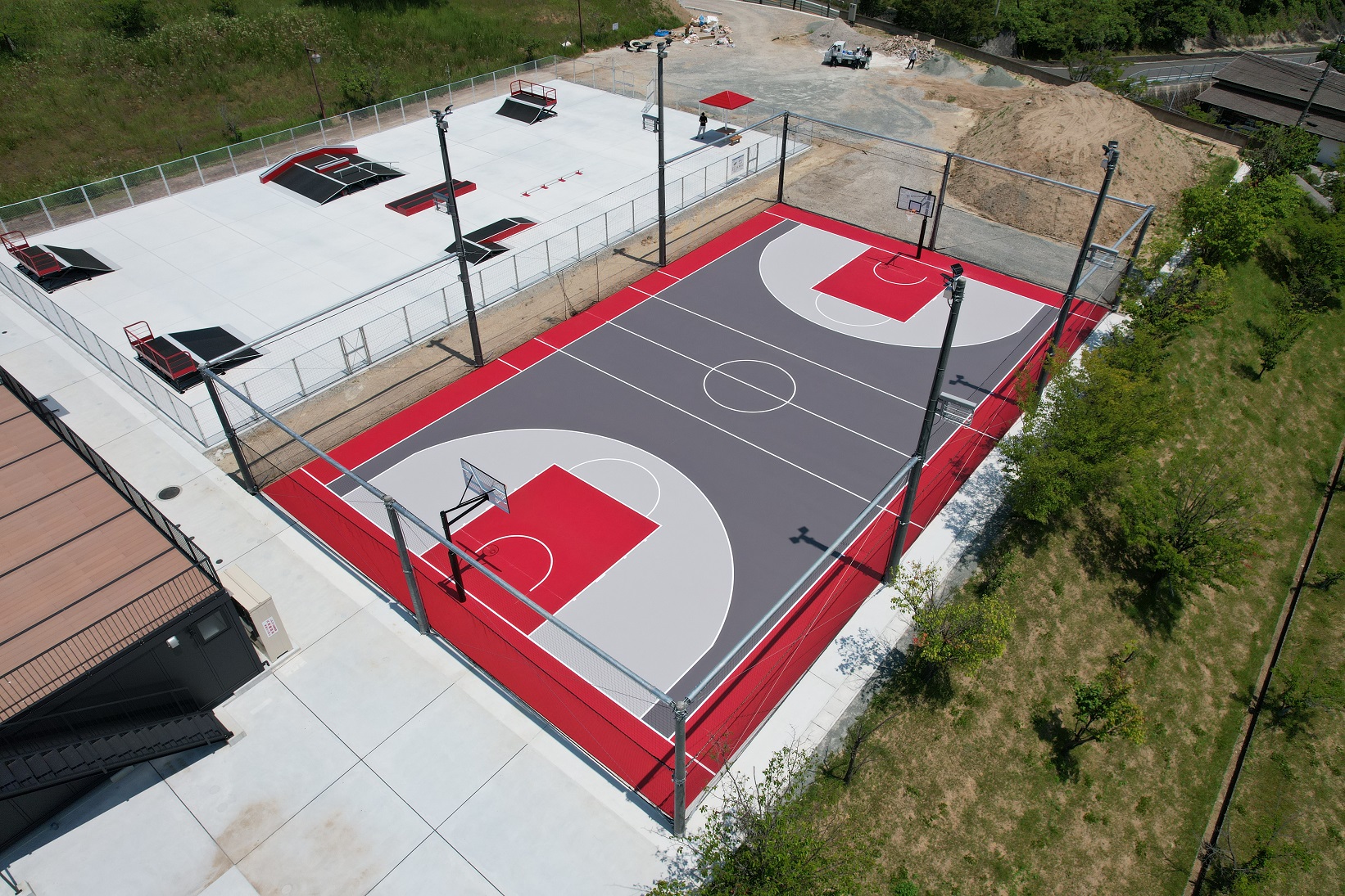 福智町の新たなスポーツ拠点として誕生した金田ふれあいスポーツ公園のスケートパーク、3×3コート新設工事を施工しました。