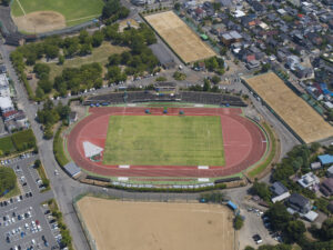 日本陸連2種公認の競技場。トラック舗装材は利用者の身体にかかる負担を軽減する『レオタンαエンボスRタイプ』を採用。