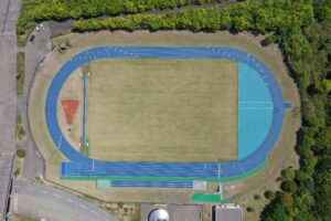 施工範囲 ウレタン舗装『レオタンαエンボスSF』、天然芝舗装(寒地型芝)、競技施設