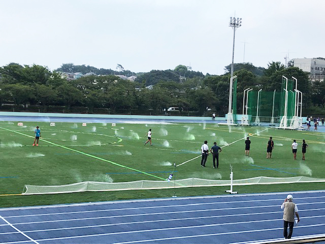 | 舗装材 | トラック:レオタンαエンボスインフィールド:スポーツターフΛ(ラムダ)フィールド冷却細霧システム |