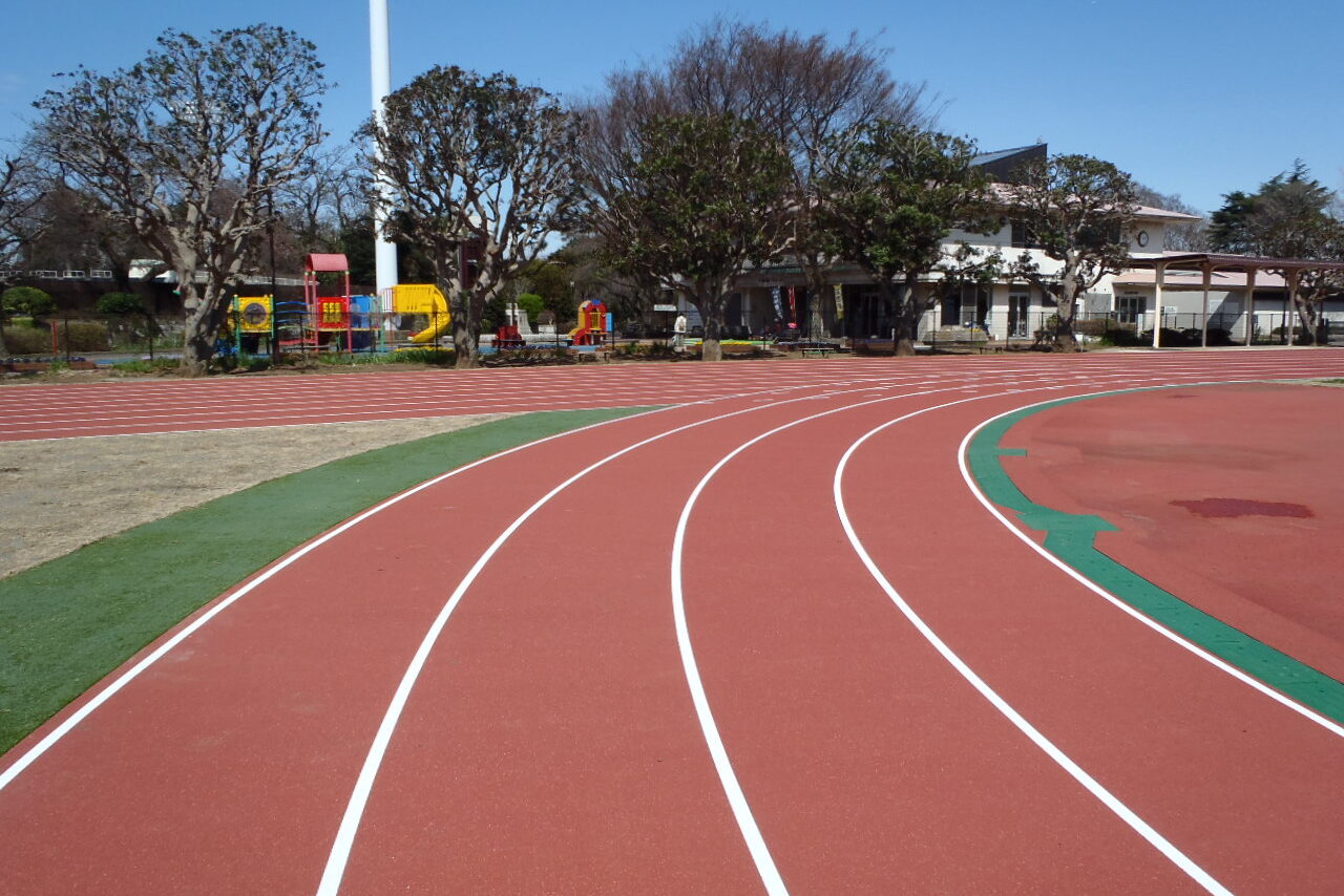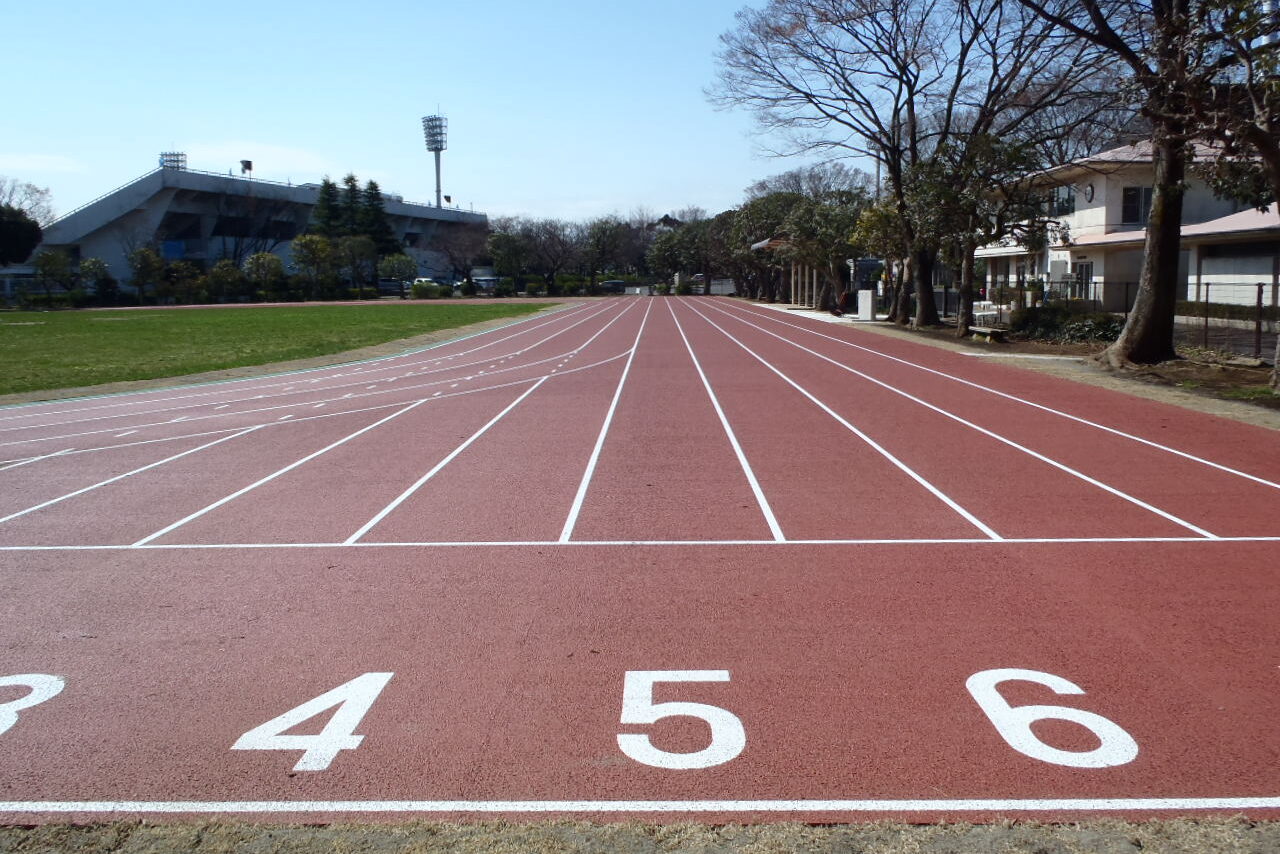1~4レーンをウレタン切削オーバーレイ工法でリニューアル。