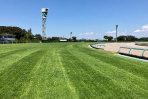 さらに、ミストを噴霧する『フィールド冷却細霧システム』が気化熱でグラウンドの気温を下げ、人工芝の表面温度を低下させる。『フィールド冷却細霧システム』は国土交通省のNETIS登録され、令和3年度の環境省「環境技術実証(ETV)事業」で暑さ対策が性能実証された技術として導入された。