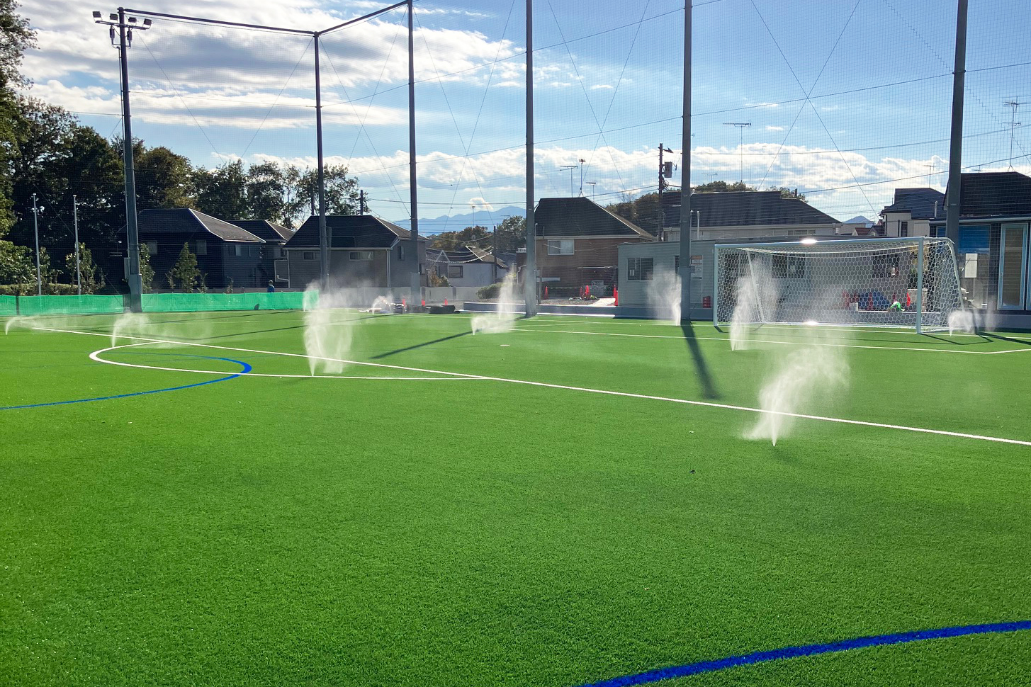 | 施工範囲 | ロングパイル人工芝舗装、下地アスファルト舗装、『フィールド冷却細霧システム』、シューティングボード、旗ポール、防球ネット |