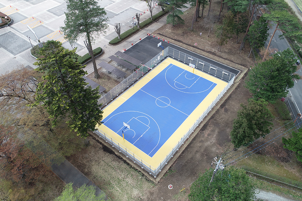 日本体育施設が施工を担当したにしなすの運動公園屋外バスケットボールコートをご紹介します。