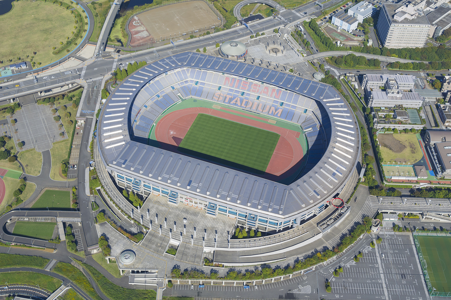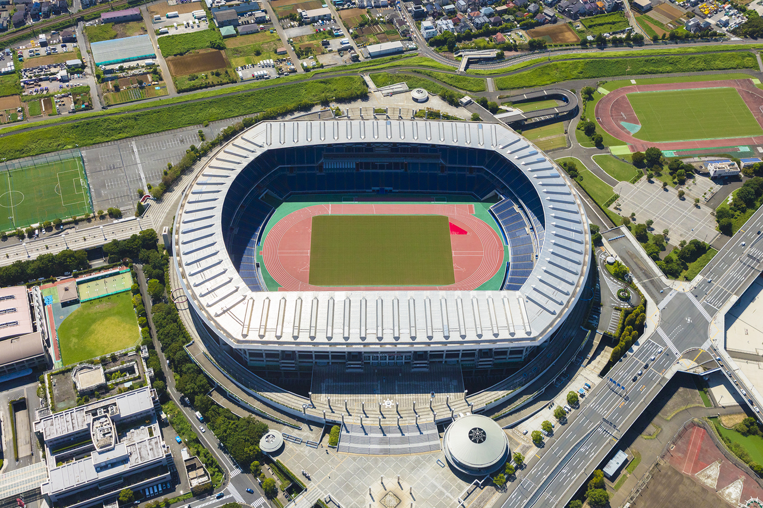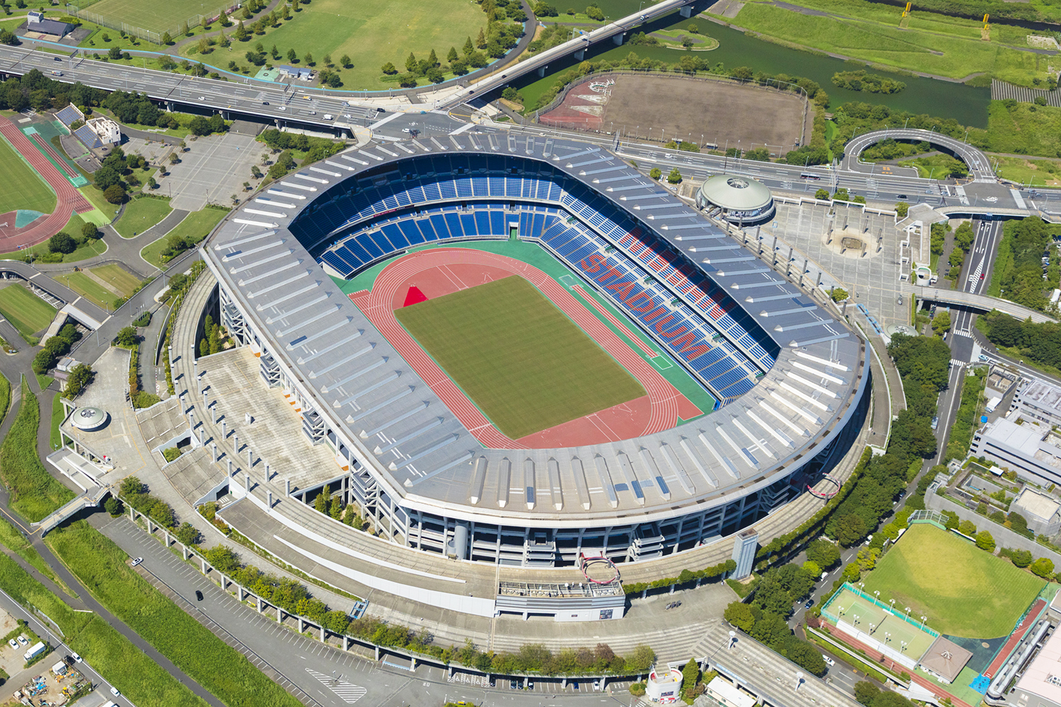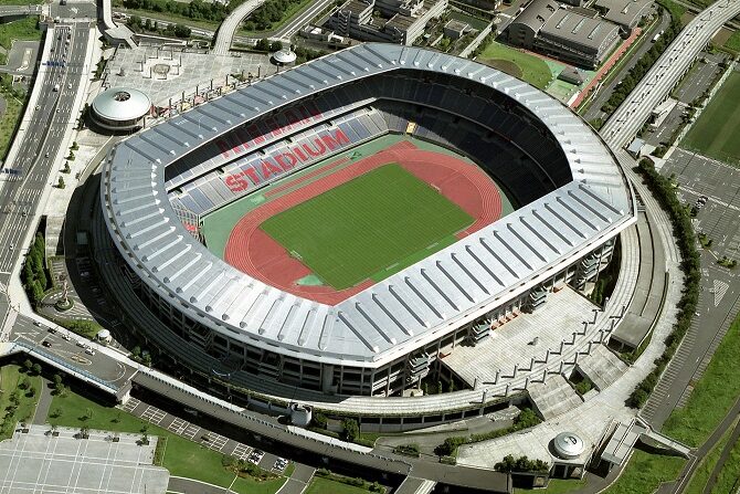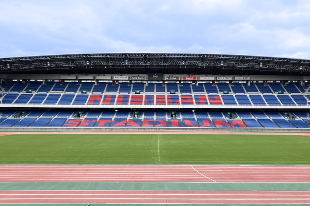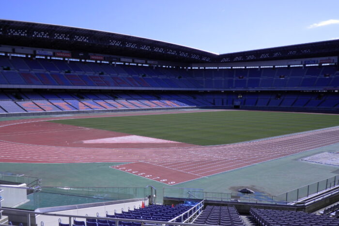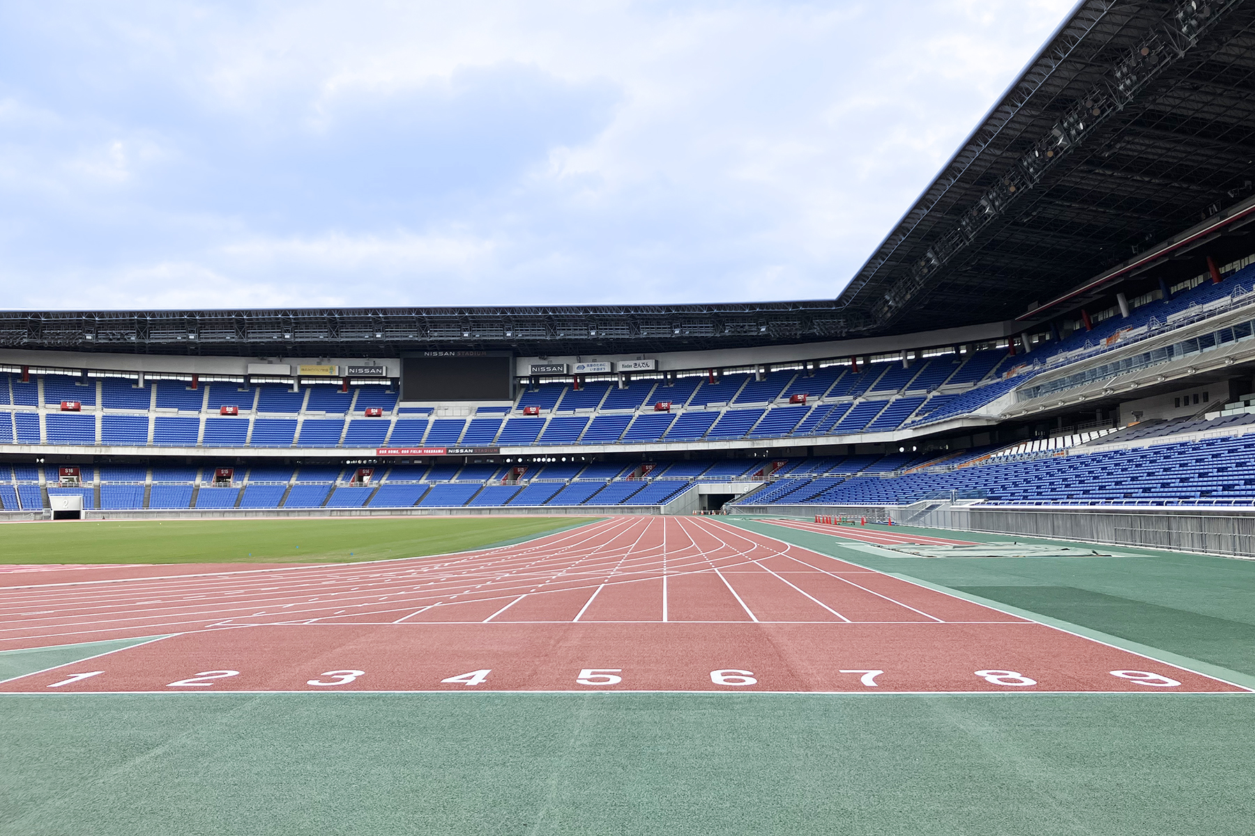 神奈川県横浜市にある日産スタジアム。日本陸連第1種公認、世界陸連(WA)クラス2認証の競技場で、2002年にはサッカーW杯決勝の会場となりました。