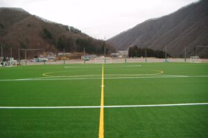 施工範囲 天然芝舗装『ウィンターフィールド』、クレイ舗装『荒木田土+洗砂、スポーツ岩瀬』、スタンドベンチ、防球ネット、人工芝舗装
