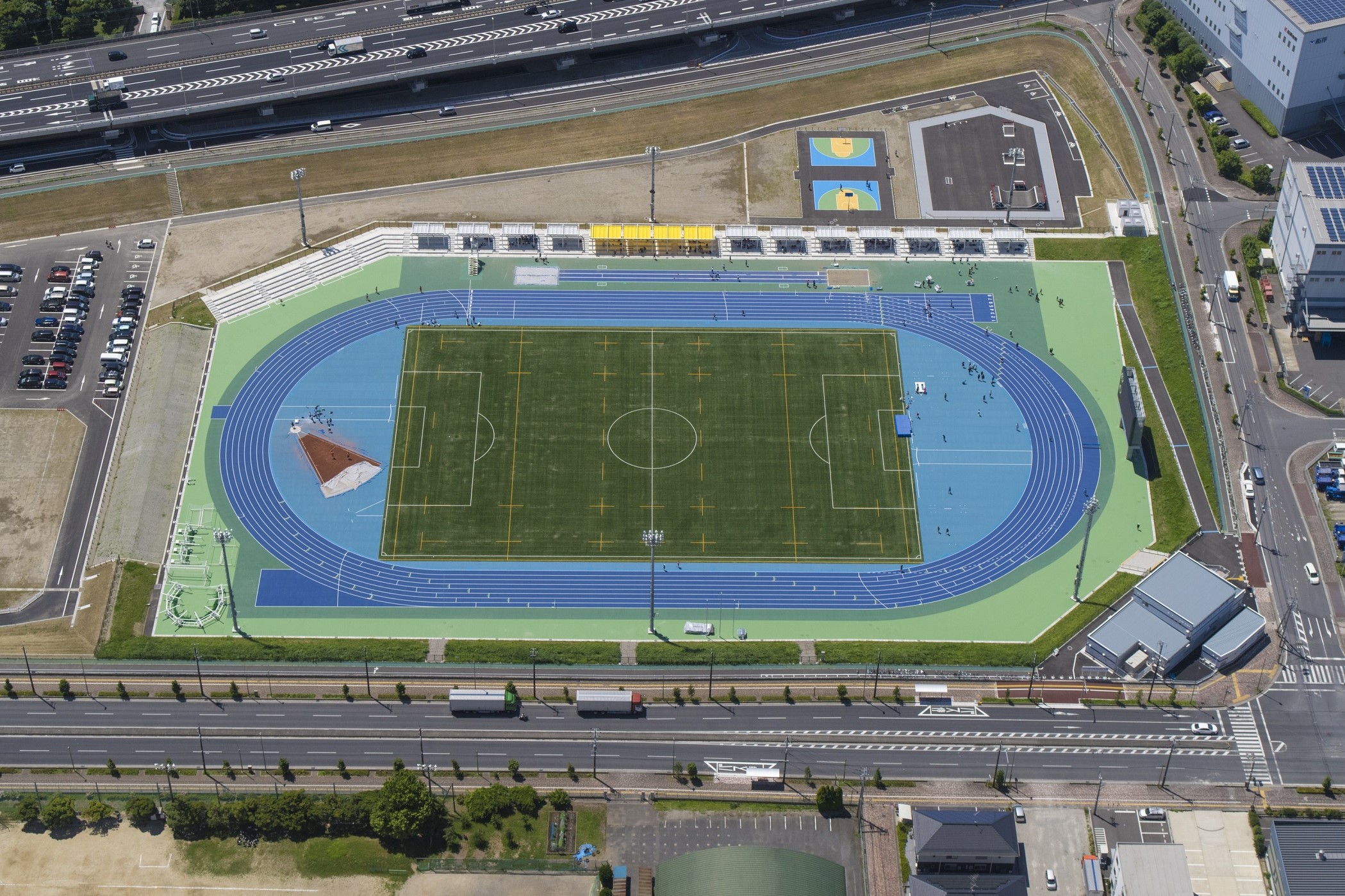 2017年の新設工事で、トラック・フィールド舗装、インフィールド舗装、競技施設、排水設備工事を施工。