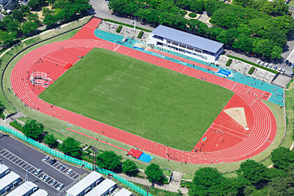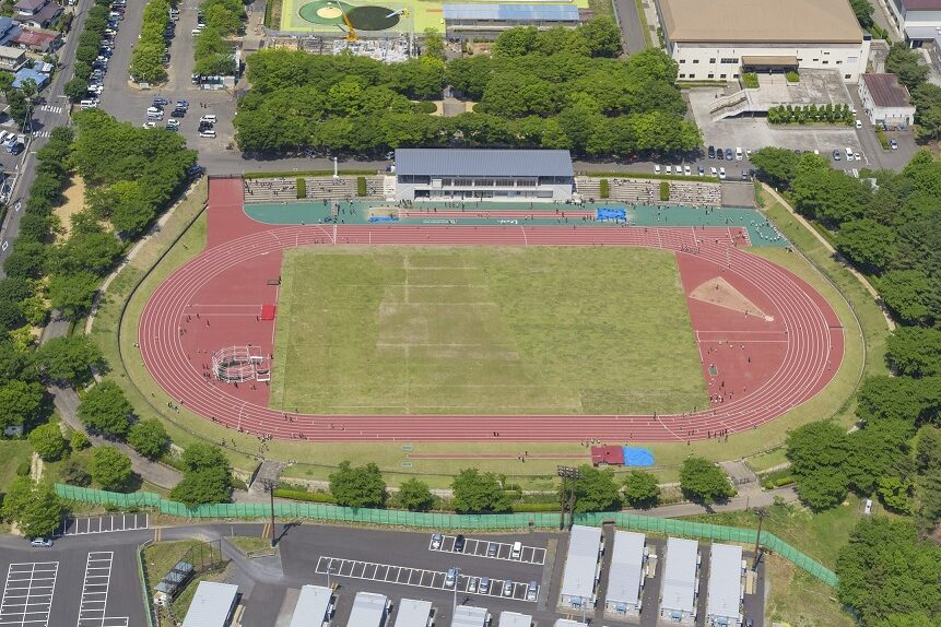 福島県にある白河市総合運動公園陸上競技場。当社は競技場の改修を担当しました。