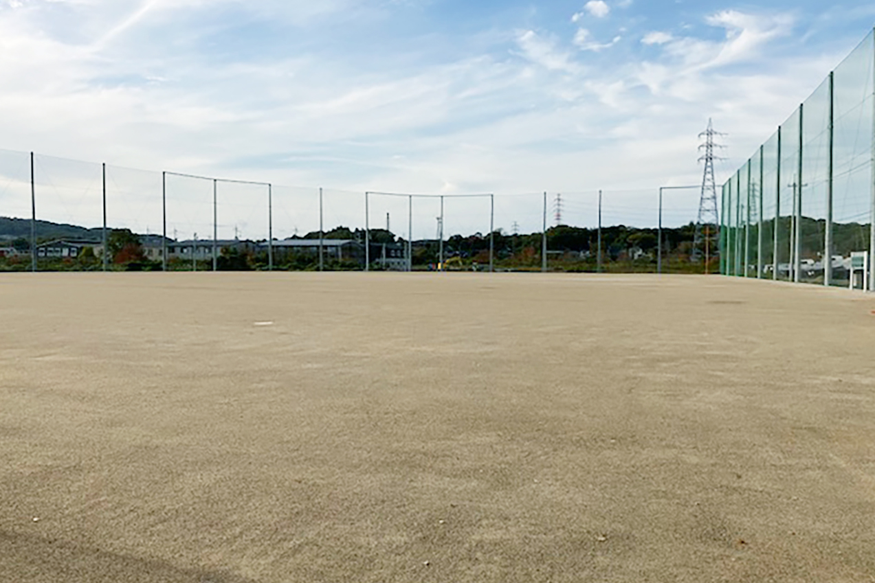 | 施工範囲 | クレイ舗装(グラウンド用真砂土)9,321㎡ 防球ネット(コンクリートポール)H=14m |