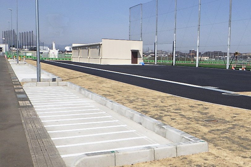 また、ジョギングや散策に利用されるグラウンドを囲む外周園路やインターロッキング舗装、駐輪場、点字シート等の工事を施工。