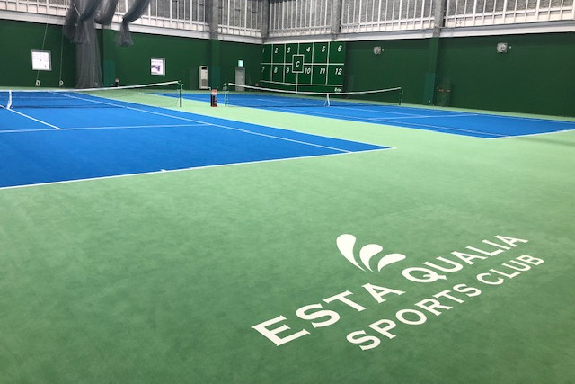 季節や天候に関わらず、快適にテニスを楽しめる冷暖房完備の室内テニスコート。