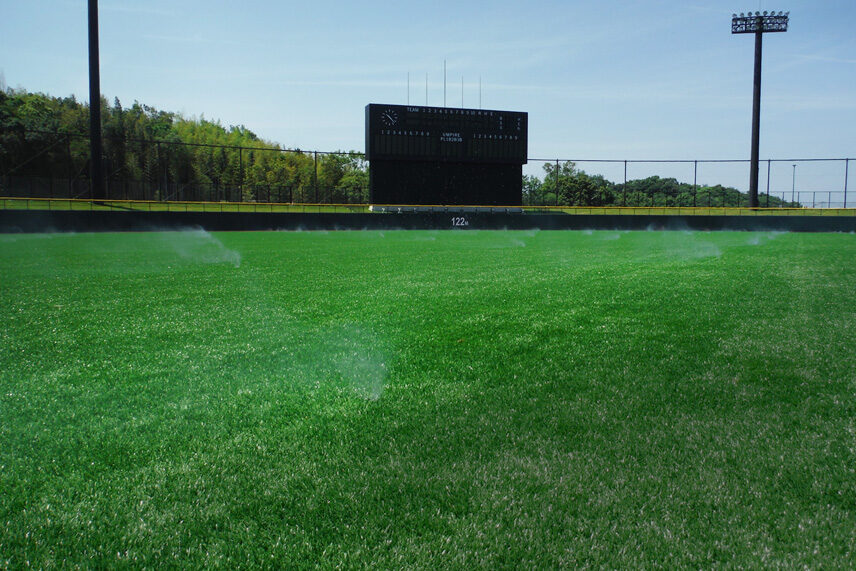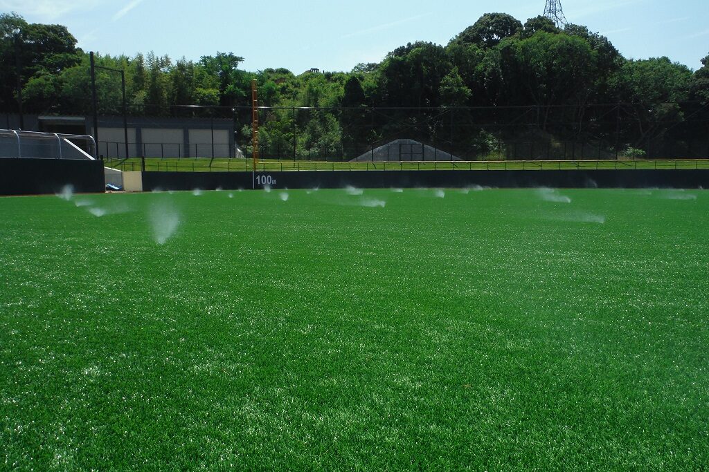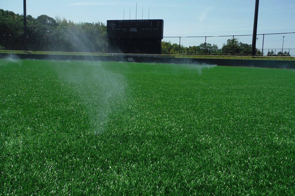 2015年の和歌山国体会場。外野には、野球場では初めてフィールド冷却細霧システムを採用。