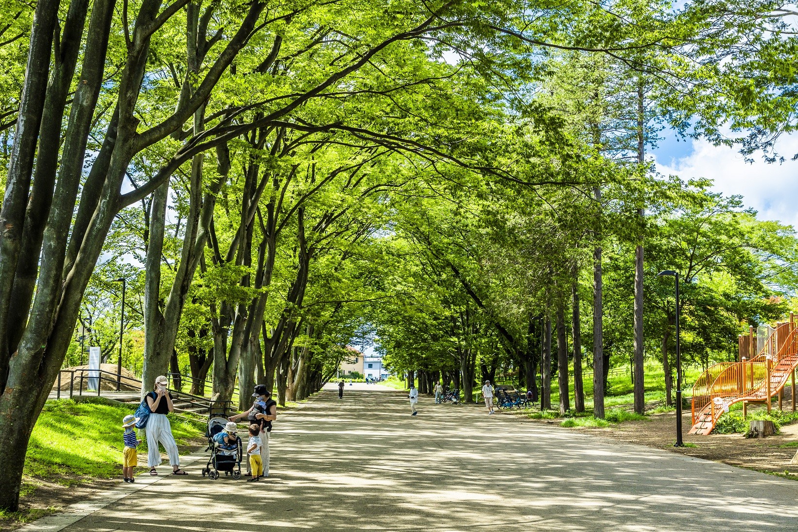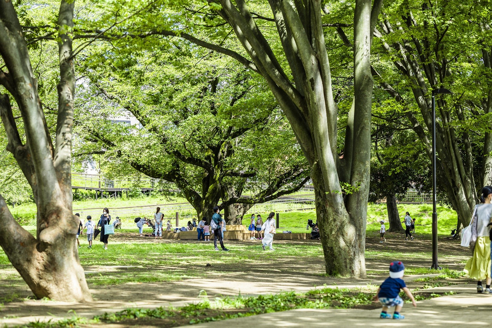 豊かな自然の中、木々の温もりを感じられ、ゆったりとした時間を過ごしていただける芝生広場や桜並木のキレイな散歩道は日頃の手入れが欠かせません。森のあそびばの大型遊具エリアやウッドチップの散策路、運動エリアの整備なども重要な業務です。当社はコミュニケーションプランナーとしてパークプロデューサーをサポート。野津田公園をはじめ町田市内の地域コミュニティーとの連携に努めています。駅近という利点や、防災機能にも優れた場所ですので、今後も皆さんに安心して楽しくご利用いただけるよう、地域連携を深め、利用促進に努めてまいります。