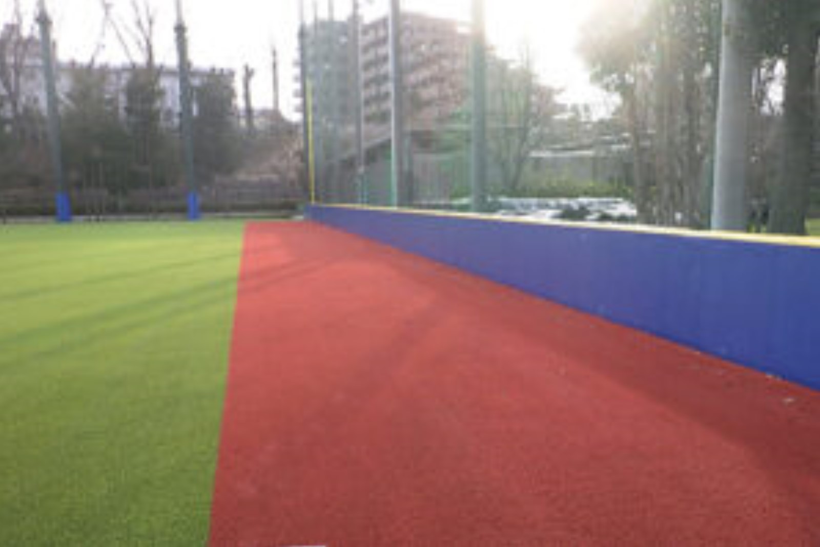人工芝は、東京六大学野球の試合が行われる明治神宮野球場と同じものが使用され、外周の防護マットも明治神宮野球場をイメージしてブルーに改修。