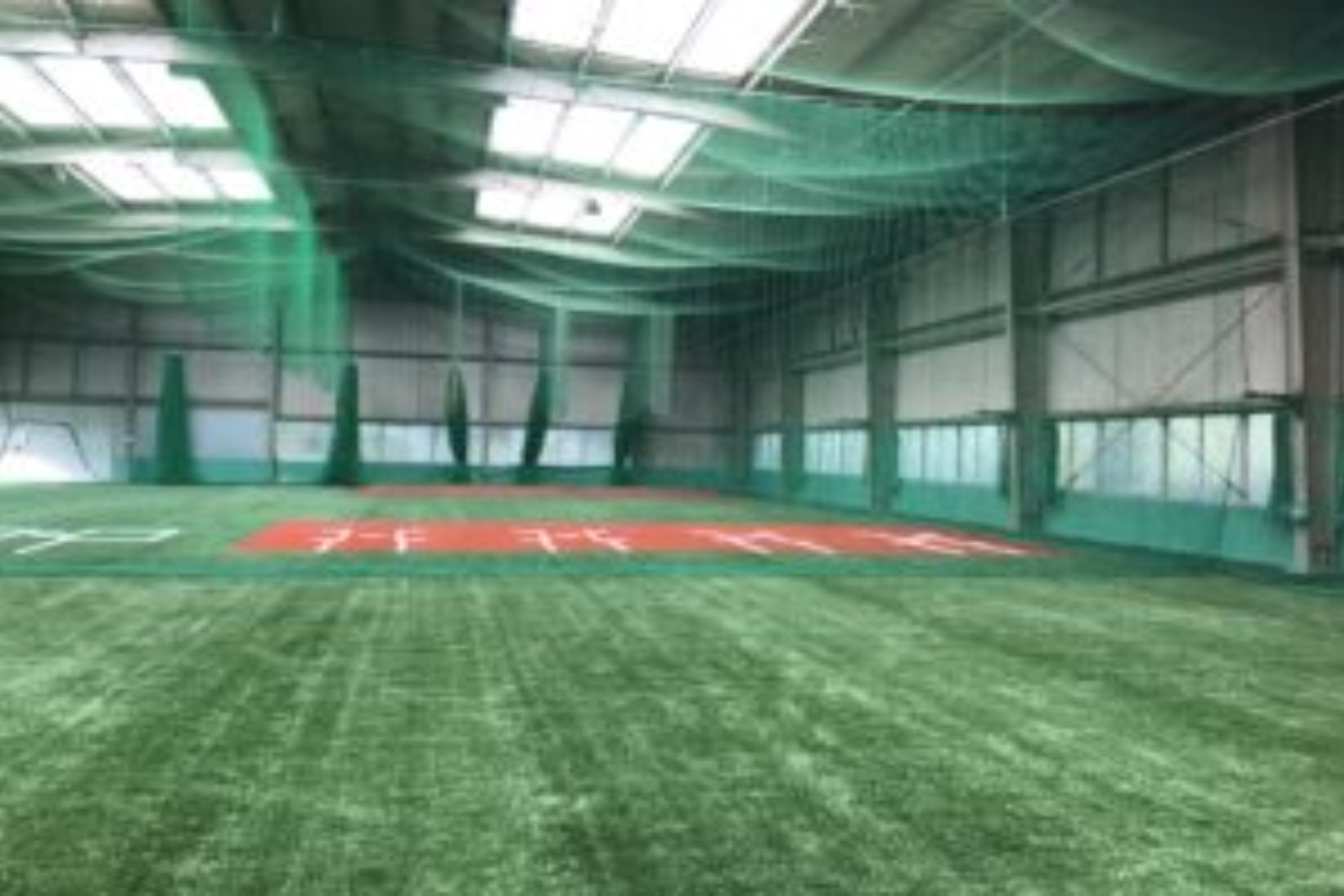 安部球場の既存人工芝をロール状に巻き取って移設し、ラインを新たに設置して、投手練習場を整備。また、室内練習場は人工芝の張替えと防球ネットを整備。
