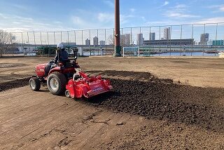 市民グラウンドとして使用されている夢の島野球場は、安全なグラウンドを維持管理すると共に、オフシーズンを利用した冬季整備にも注力しています。