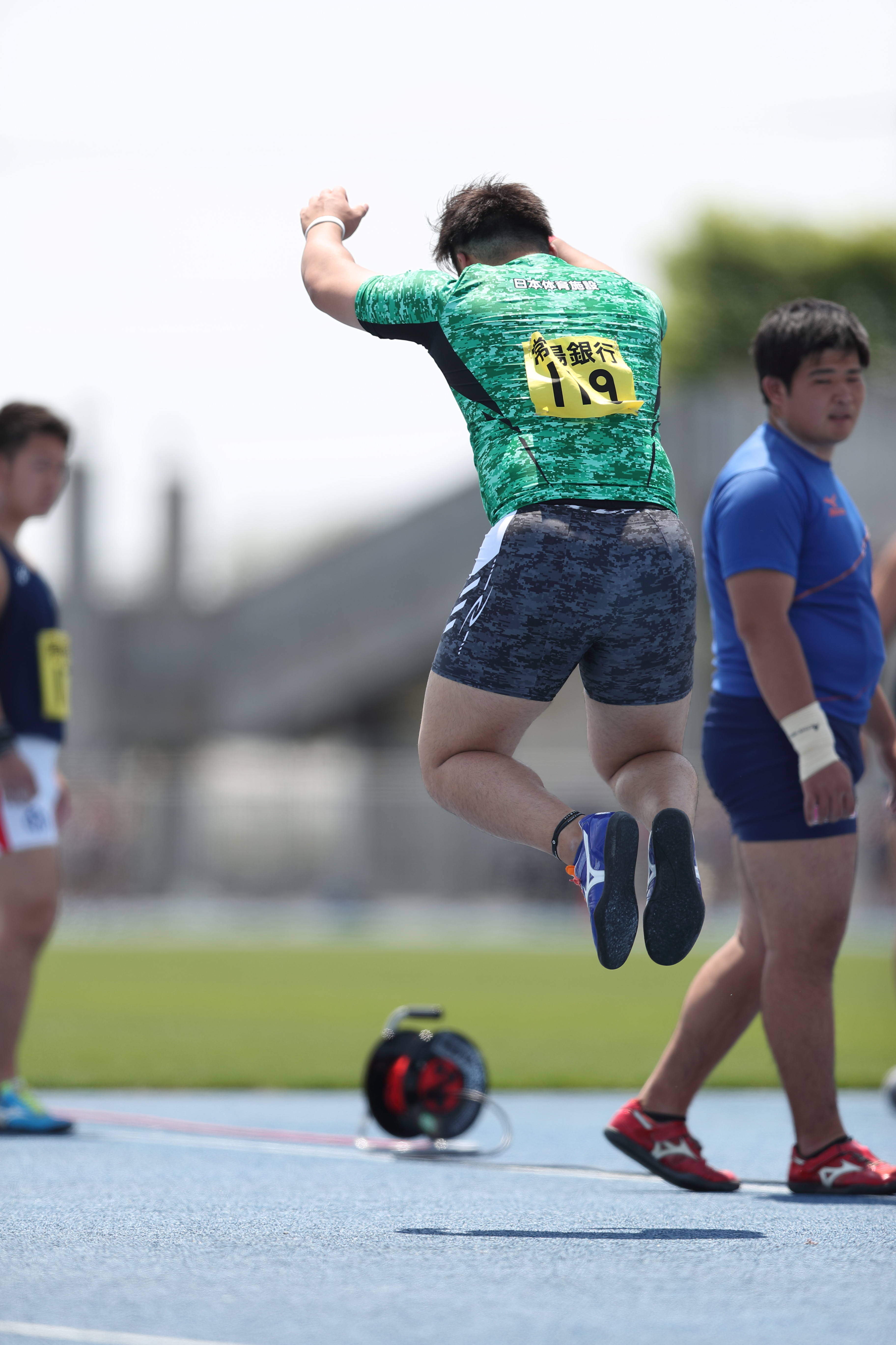 特に投てき種目、なかでも砲丸投は、筋肉だけでなく、体重も飛距離を出すのに有利になります。理由は筋肉だけだとどうしても上半身に重心がいきやすく、自らが発射台となる投てきでは、下半身に重心を寄せてどっしりと構えられる体型の方が理想です。