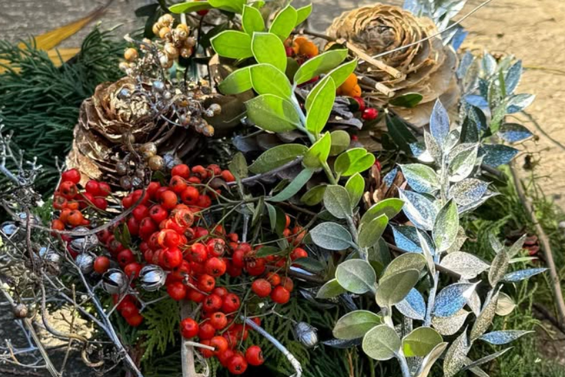 植物管理で発生した剪定枝や、伐採した樹木は、クリスマスリース用のキットとしてイベントで販売したり、クラフト教室で活用しています。