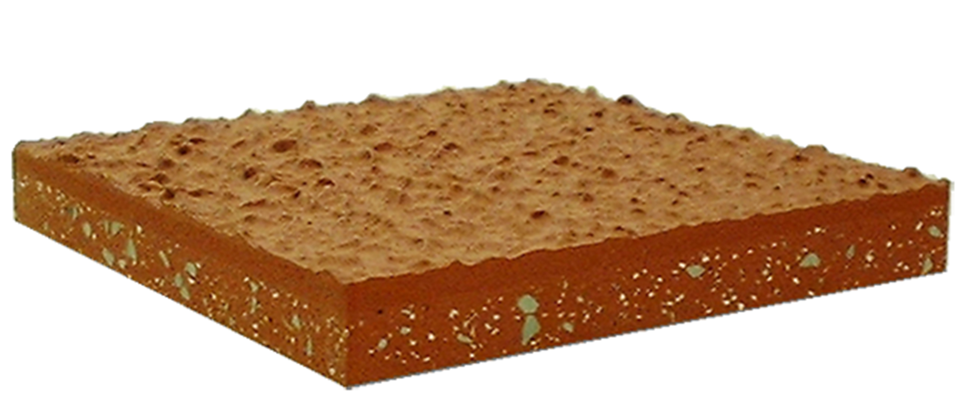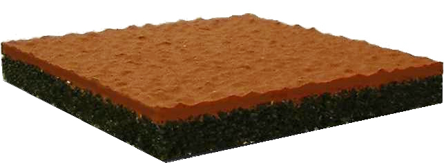 当社製品『レオタンαエンボス』にもフルウレタンタイプと複合弾性舗装(Rタイプ)がありますが、フルウレタンタイプは反発力が高く、複合弾性タイプは衝撃吸収性に優れる分、反発力が低いという違いがあります。