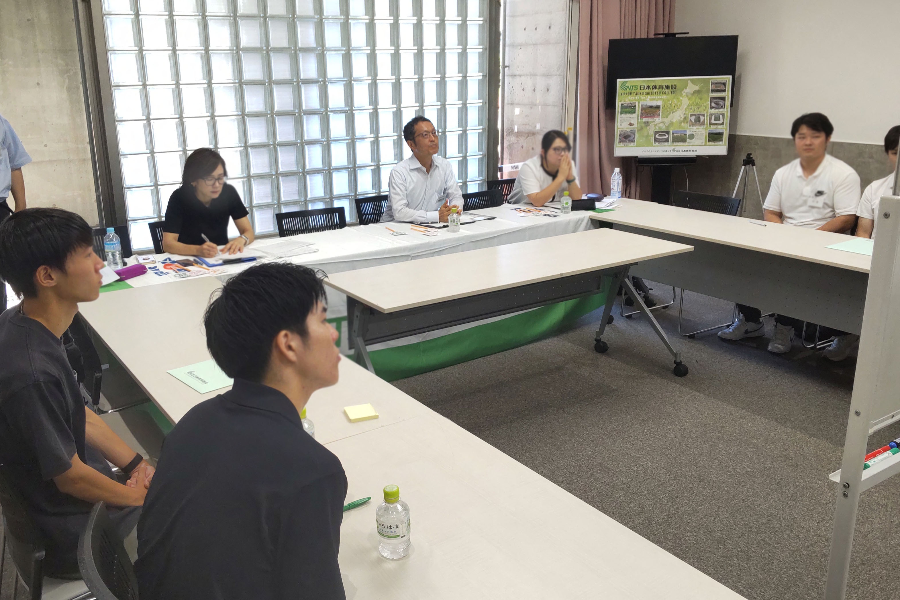 まずは、講師を務める職員から、スポーツ業界の最新トレンドから運動施設建設業のミッションや感動を生むスタジアムづくりの潮流について説明しました。