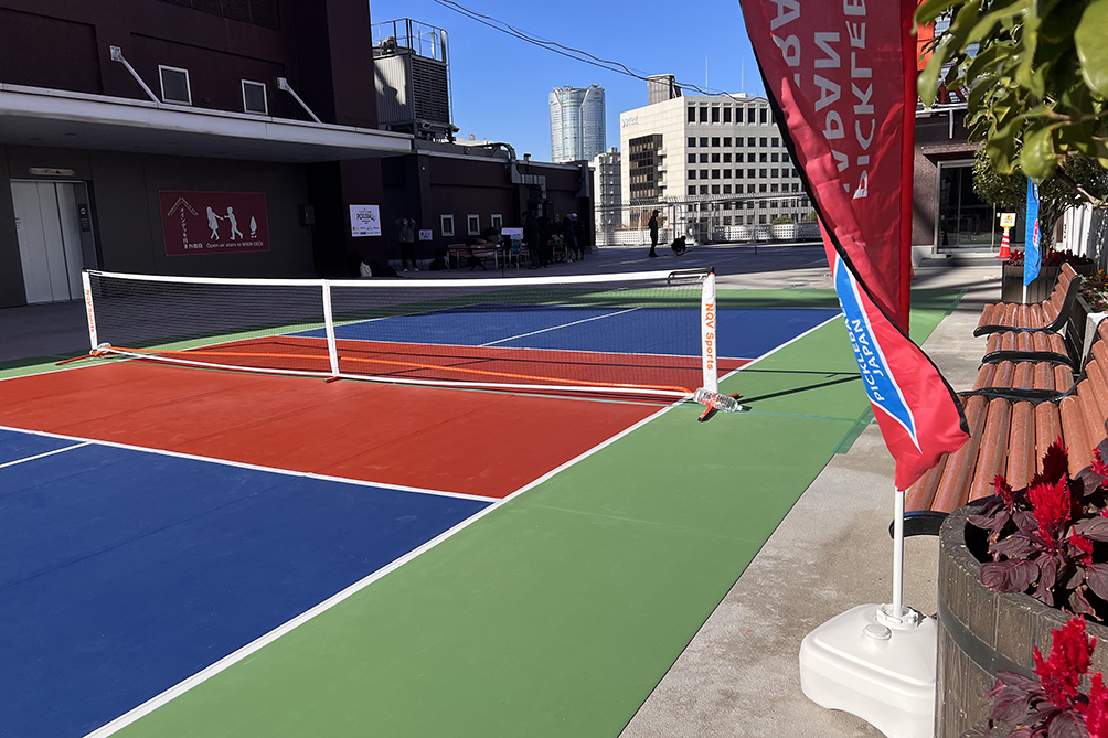 日本体育施設は置敷き型ピックルボールコートを開発しました。