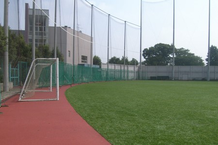 体育の授業のほか、ラグビーや軟式野球などで使用されるグラウンドは、ロングパイル人工芝舗装です。人工芝の下地舗装は、現場からの発生土を抑制すると共に、生徒達の安全性を重視した構造にしました。