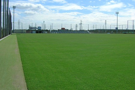 Jリーガーの足下を支える、サッカーコート2面分の天然芝フィールド