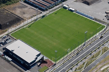 約16,400㎡の天然芝フィールドには、サッカーコート2面を配置することが可能で、夜間照明や観客席、芝生を維持していくための散水施設も整備され、クラブハウス内にはオフィシャルショップもオープンしました。