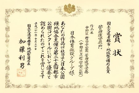 日本体育施設グループが指定管理者として管理運営を行っている中野区哲学堂公園が、(社)日本公園緑地協会が主催する平成21年度の都市公園コンクール(管理運営部門)において、国土交通省都市・地域整備局長賞を拝受しました。