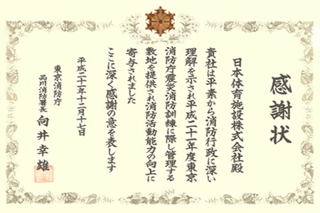 その際の弊社スタッフの協力が消防活動能力の向上に寄与したとして、東京消防庁品川消防署長より感謝状を頂きました。