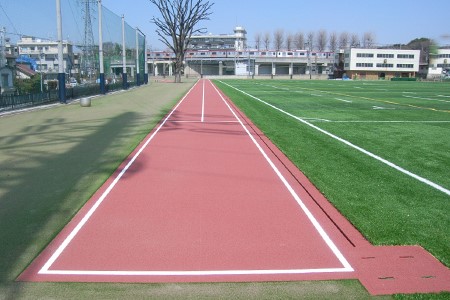 さらに、グラウンドの外周部分には、100m直線走路と走幅跳用の助走路が整備されました。