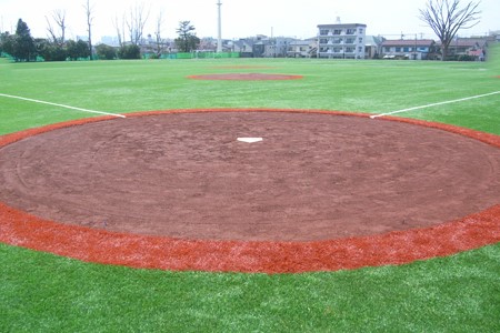 マウンドとホームベース周りのアンツーカ舗装