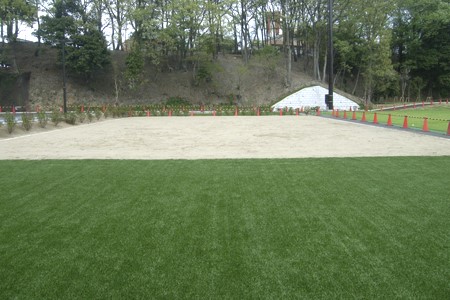 メイングラウンドに隣接して、砂場とロングパイル人工芝舗装の練習場が設けられているほか、メイングラウンド用の天然芝舗装の圃場も整備されました。