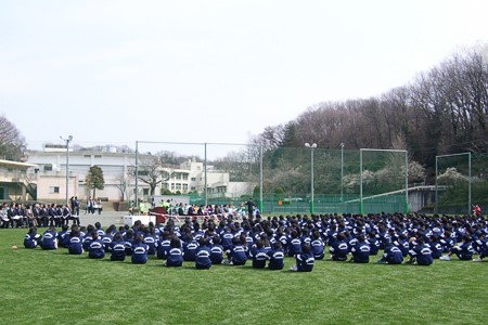 東京都瑞穂町立瑞穂中学校のグラウンド、面積8,000㎡以上の大規模な校庭緑化工事が完成し、3月14日には、グラウンドの芝開きが行われ、吹奏楽部による演奏や全生徒による記念撮影などが行われました。