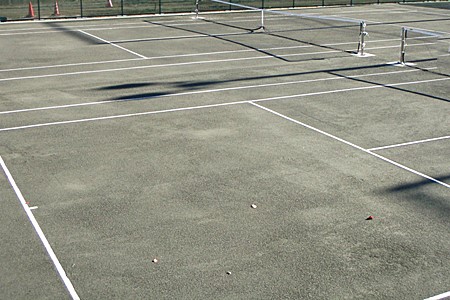 今回の工事では、芝生化の他にテニスコートや野球場のバックネットもリニューアルされ、テニスコートは、『グリーンコート』(緑色スクリーニングス)で整備し、野球場のバックネットには防護マットを設置することで、利用する生徒たちの安全性に配慮した設備にしました。