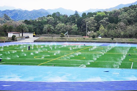 グラウンド面から噴霧されるミストが、夏場の暑さを緩和し、利用される方々により良いスポーツ環境を提供いたします。