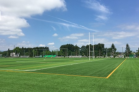 人工芝は、ラグビーとサッカーともに安全に安心して利用できるよう、ロングパイル人工芝舗装とアンダーパッドを組み合わせたシステムを採用しました。
