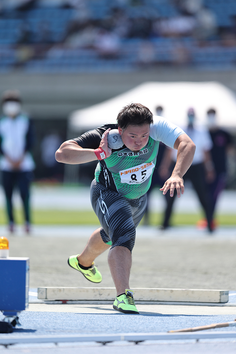 晴天のケーズデンキスタジアム水戸で開催され、男子砲丸投に出場した村上輝選手は18m02の今シーズンベスト記録で優勝しました。