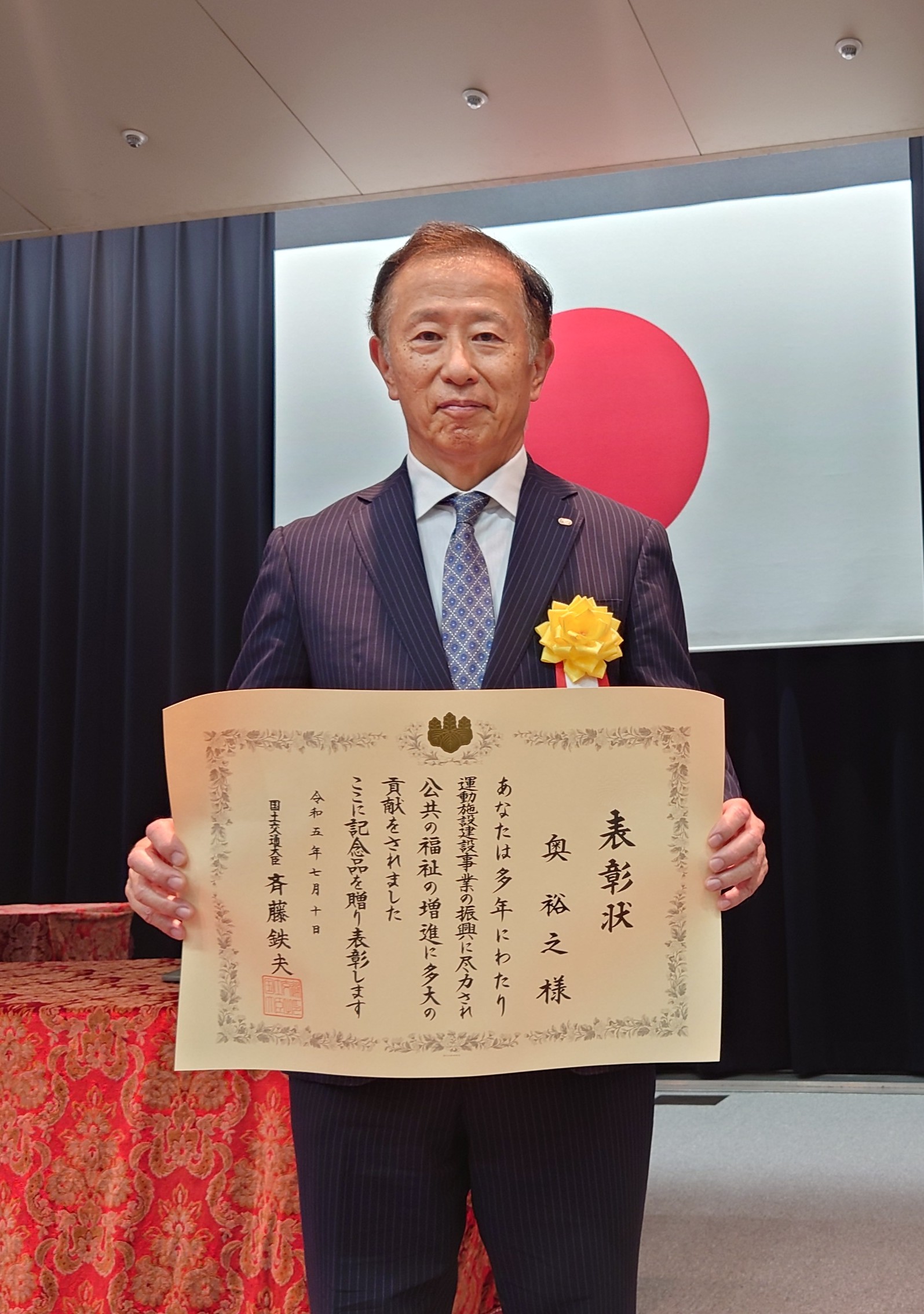 令和5年建設事業関係功労者等国土交通大臣表彰において当社奥裕之会長が表彰されました。