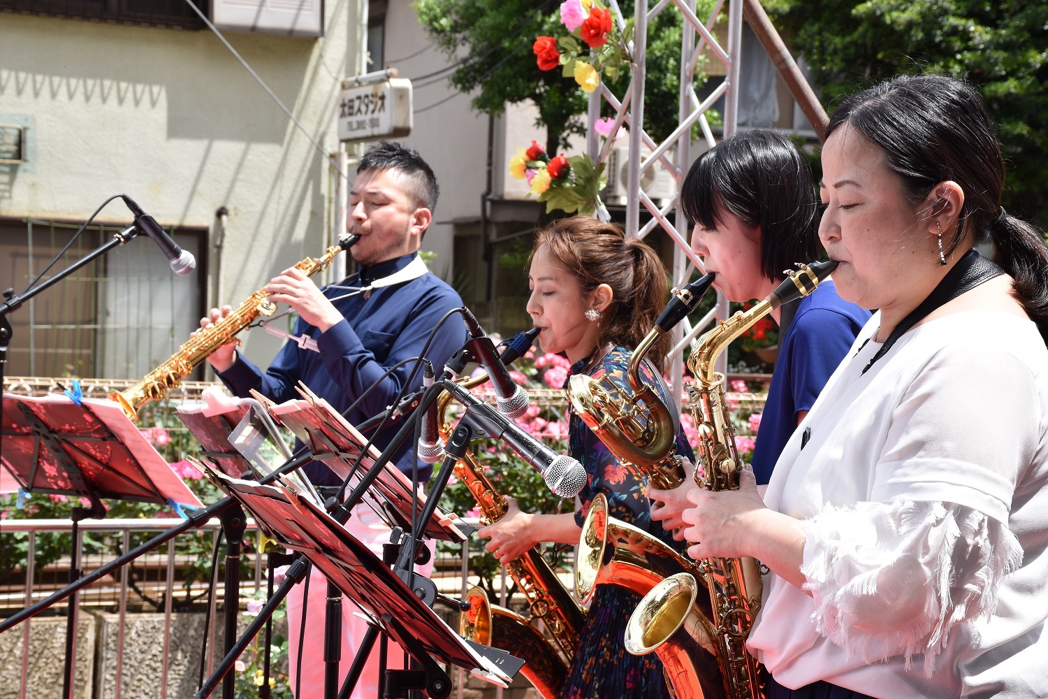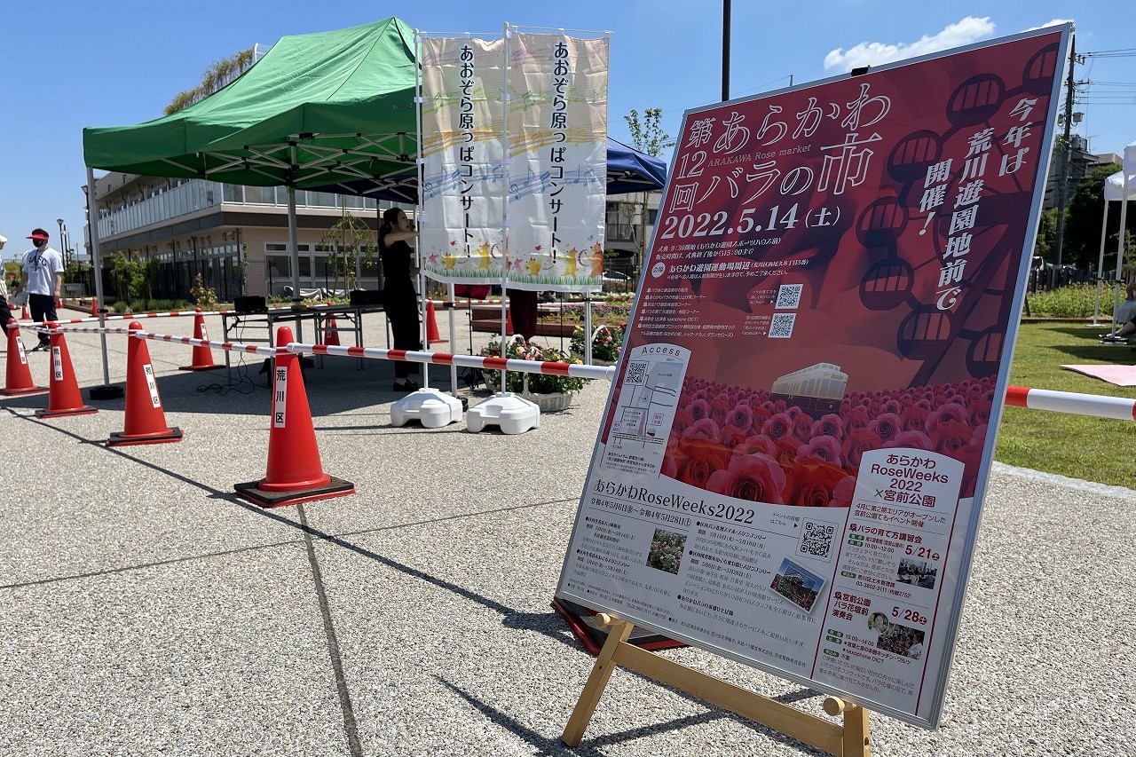 バラが見頃の5月に東京都荒川区主催「あらかわRoseWeeks2022」としてイベントが行われ、開園間もない公園にたくさんの人が来園されました。当日は日暮里にある「ひぐらしベーカリー」さんのご協力のもと、パンとドリンクの出張販売を行ったり、アーティストによる演奏会も実施されました。この季節ならではの気候と花々の気品あふれる景観に春の訪れを感じ、大変素晴らしい時間となりました。