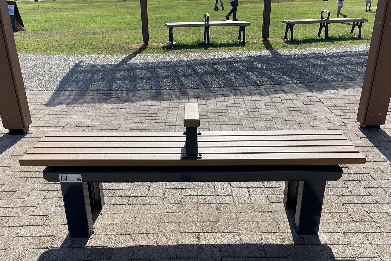 直射日光や雨から守り、また木製の素材にすることで、柔らかな温かみがあるベンチになり、プレイヤーの休息に最適です。