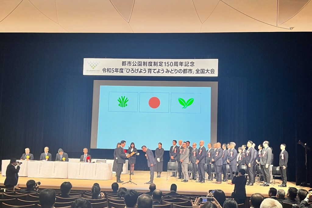 令和5年10月27日(金)に「ひろげよう、育てよう、みどりの都市」全国大会にて表彰式が行われ、Anker フロンタウン生田の浦野支配人にご出席いただきました。