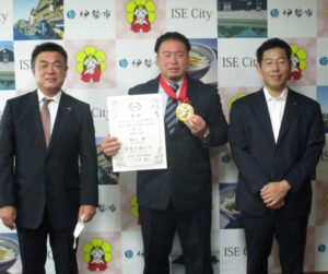 メダルをかけて記念撮影